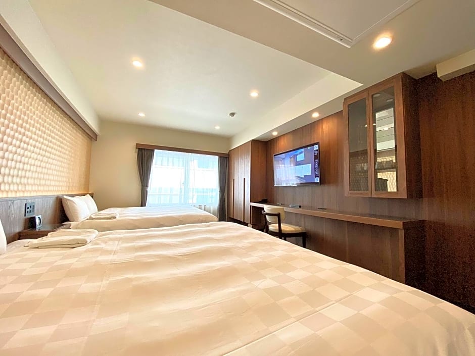 More spacious air-conditioned room featuring a TV, a fridge and an electric kettle with green tea bags. Japanese Yukata robes and toothbrush sets are provided for all guests. The private bathroom comes with a hairdryer.